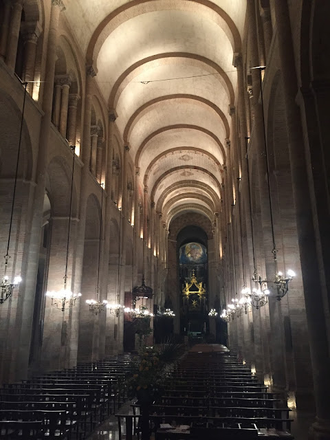 Továbbsétálok a Pont Neuf-ön, most biciklizett el mellettem Dalí, útbaigazítok egy helyit, a Bazilikában koncert van, előre be kellett volna jelentkezni, de a nap végén a zárás előtti másodpercben elcsípem a plébánost aki beenged, így láthatom a lovagkori kereszt alakú csodát.